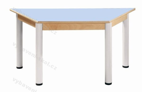 Stůl lichoběžníkový, výškově stavitelné nohy. Rozměr: 120x60x52 - 70 cm (ŠxHxV).