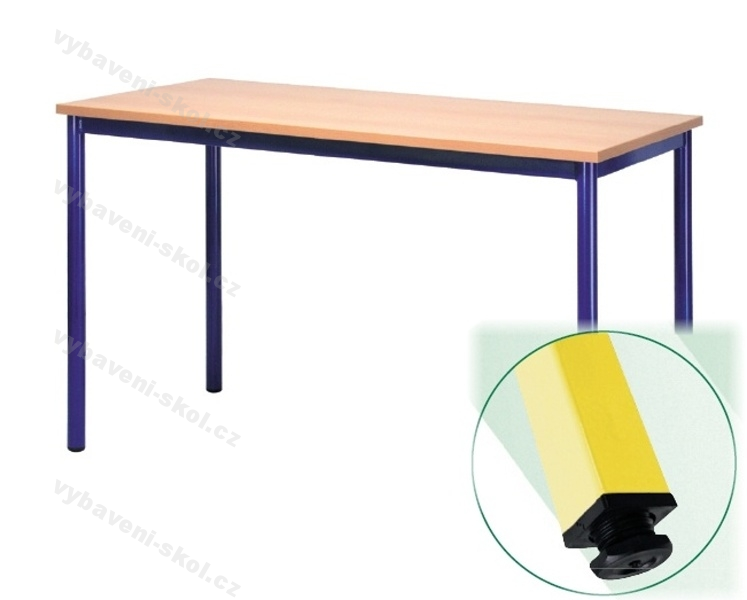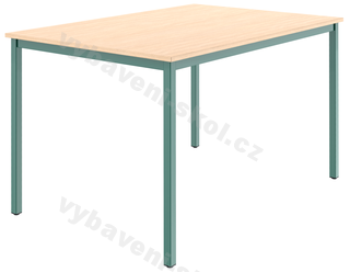 Kovová kostra stolu z jäklového profilu, rám 40x20 mm, nohy 30x30 mm, s povrchovou úpravou žárovým komaxitem. Pracovní deska je vyrobena z laminovaného dřevotřískového materiálu o síle 18 mm nebo 25 mm s 2 mm ABS hranou.