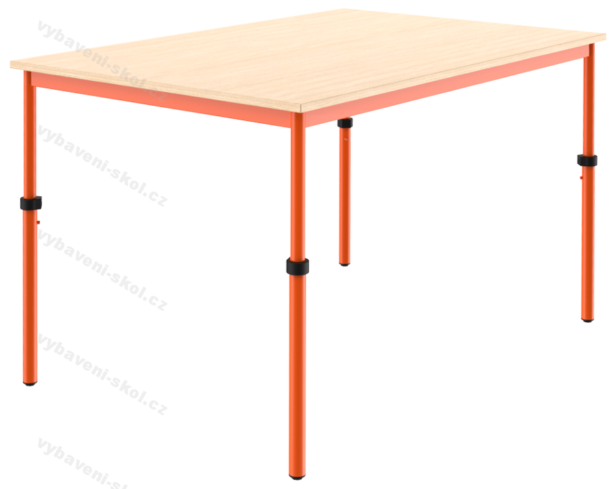 Kovová kostra stolu výškově stavitelná z trubkového profilu 32 a 28 mm a z jäklového profilu 40x20 mm, s povrchovou úpravou žárovým komaxitem. Pracovní deska je vyrobena z laminovaného dřevotřískového materiálu o síle 18 mm nebo 25 mm s 2 mm ABS hranou.