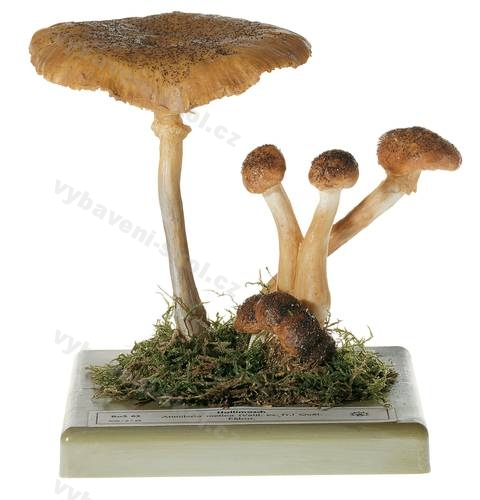 Vysoce realistický model - špičková kvalita SOMSO. Speciální Somso-plast, precizní rukodělná výroba. Houby umístěny na podstavci, naaranžované v mechu. Skutečná velikost.
