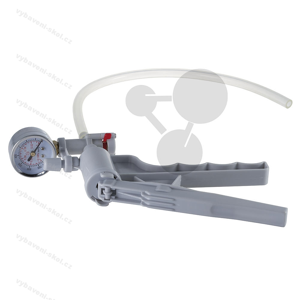 Jednoduchá mechanická vakuová vývěva, k vakuování menších recipientů v oblasti hrubého vakua. S integrovaným zavzdušňovacím ventilem a manometrem s ukazatelem.
