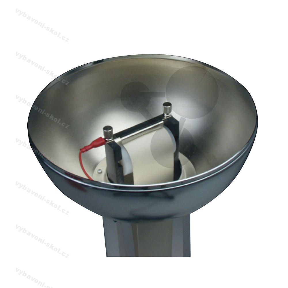 Vedení pásu s izolačními výztuhami z plexiskla, snímatelné, poniklovaná vodivá koule o průměru 220 mm se 4 mm zdířkou.