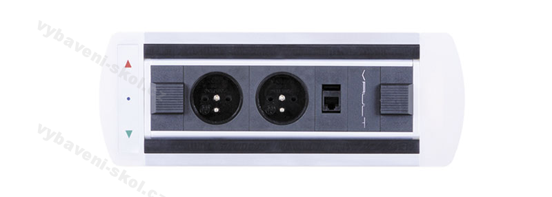 2 x elektrická zásuvka 220V, 1 x datová zástrčka kategorie 5E.