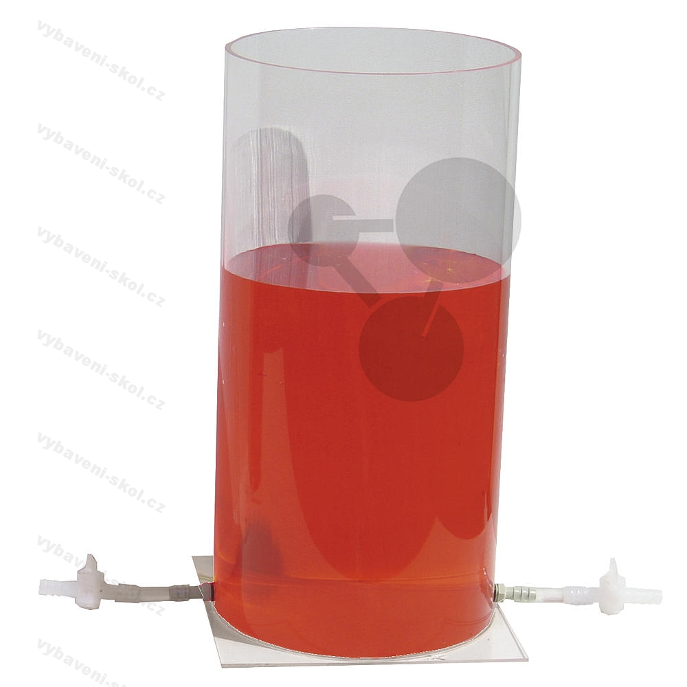 Duté těleso z akrylu. 2 otvory, které lze otevírat a zavírat. Max. výška vodního sloupce 390 mm.