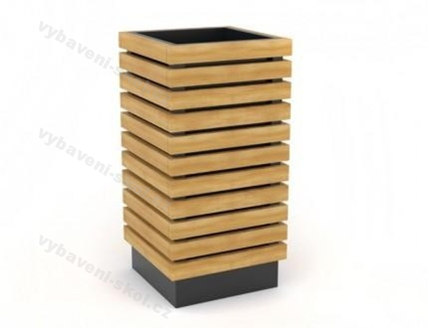 Řada odpadkových košů Deluxe v mnoha tvarových i materiálových variantách. Zjemňující dřevěné lamely, technicistně čistý drážkovaný plech či zajímavě průhledný tahokov přinášejí vždy jiný, avšak elegantní efekt. Účelnost a vysoká odolnost proti vandalismu a korozi jsou samozřejmostí. Nosná ocelová kostra ošetřena práškovou barvou RAL dle výběru nese opláštění z masivního dřeva, které je povrchově upravené třikrát natřenou lazurou ve volitelném dezénu. Vložená nádoba z pozinkovaného plechu. Koš můžeme dodat i ve variantě se stříškou (v případě zájmu napište do poznámky). Kotvení koše do betonové patky či na dlažbu nebo betonováním.