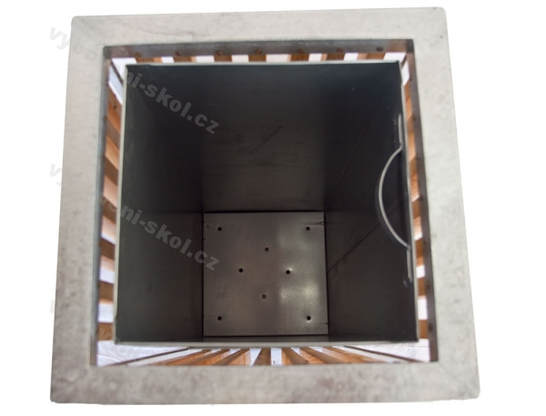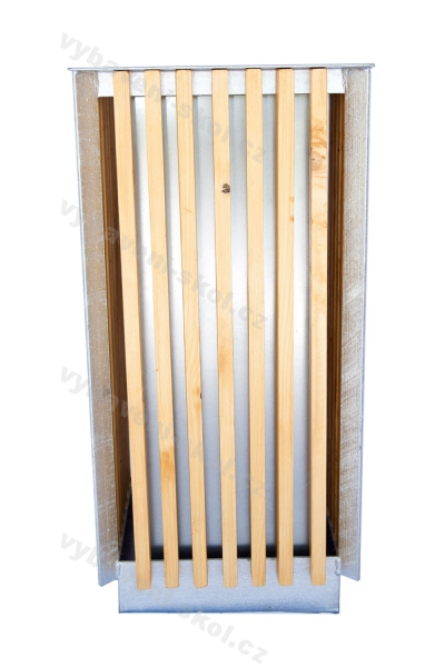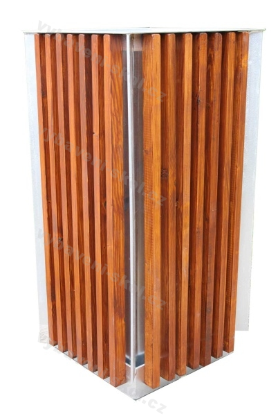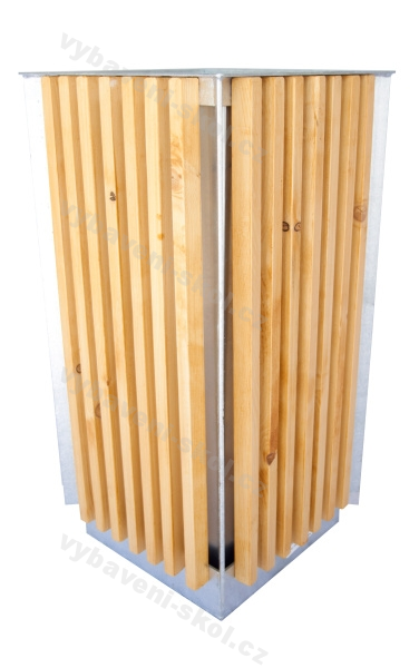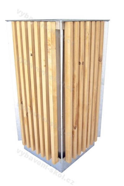 Ocelový plášť koše v kombinaci hoblovanými smrkovými latěmi s vyjímatelnou pozinkovanou vložkou.