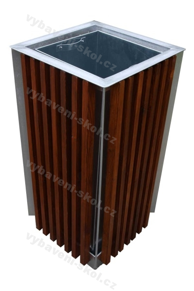 Odpadkový koš s dřevěným obložením do veřejných prostorů! Designový odpadkový koš vhodný do centra města, na zastávku, ke vchodům budov nebo k dětskému hřišti. Venkovní koš s pozinkovanou nádobou. Ocelová kostra je ošetřena práškovou vypalovací barvou s výběrem RAL provedení. Obložení koše hoblovanými smrkovými latěmi ošetřený třikrát lazurou ve volitelném dezénu s UV ochranou. Koš lze kotvit šrouby nebo variantou pro betonáž.