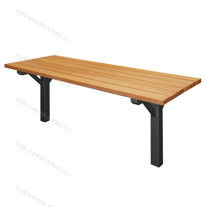 Kovová konstrukce stolu z jeklu 60x60 mm a ploché ocele s kombinací smrkových latí. VxDxH 750x1500x650 mm. Hmotnost: 35 kg. Dřevěné latě:1500x100x35 mm.
