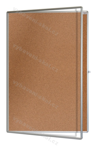 Prosklená závěsná vitrína slouží jako informační tabule, korková nástěnka. Hloubka 19 mm. Výplň tvoří deska z drceného přírodního korku, jednoduché vpichování celé délky špendlíků. Sendvičová konstrukce zajišťuje nekroucení tabule. Vitrínu chrání jednokřídlové dveře s akrylátovým sklem, odolným vůči UV záření. Rámy vitríny jsou vyrobené z kvalitního eloxovaného hliníku se zaoblenými plastovými rohy. Dvířka vitríny jsou opatřené zámkem se 2 klíči. Vitrína je určená k použití ve vnitřních prostorách, lze ji zavěsit vertikálně i horizontálně. Montážní sada k uchycení na stěnu je součástí balení. Nástěnku lze umístit na paravánové nohy (nejsou součástí dodávky). Rozměry 75x100 cm (Š x V).