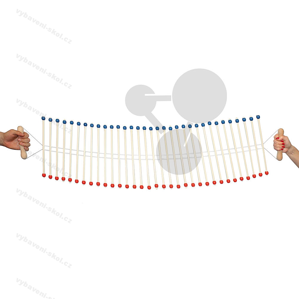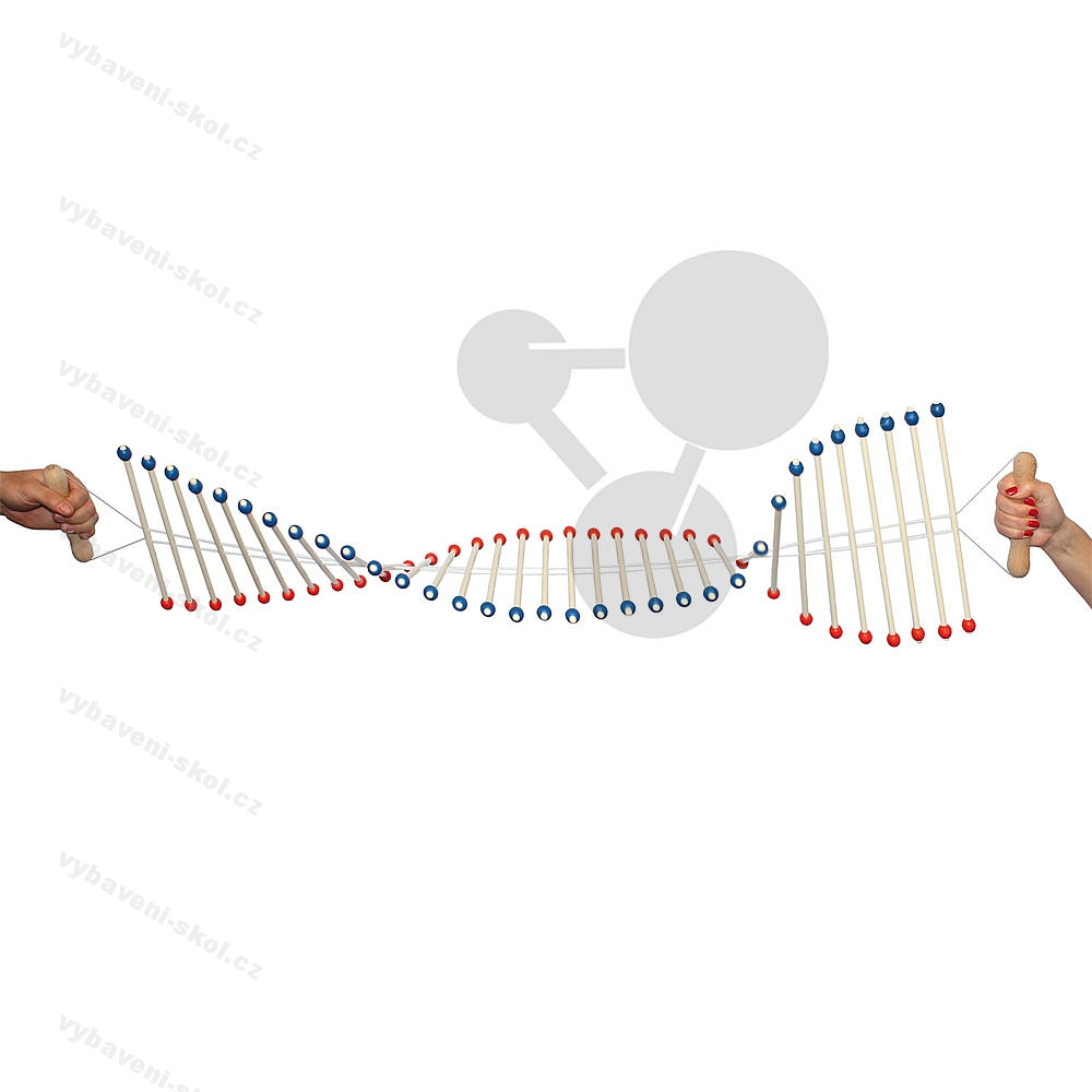 Ruční zařízení pro demonstraci a názornou ukázku šíření, odrazu a lomu transverzálních vln. Pomocí posuvných závaží lze měnit setrvačný moment dvojitého kyvadla.