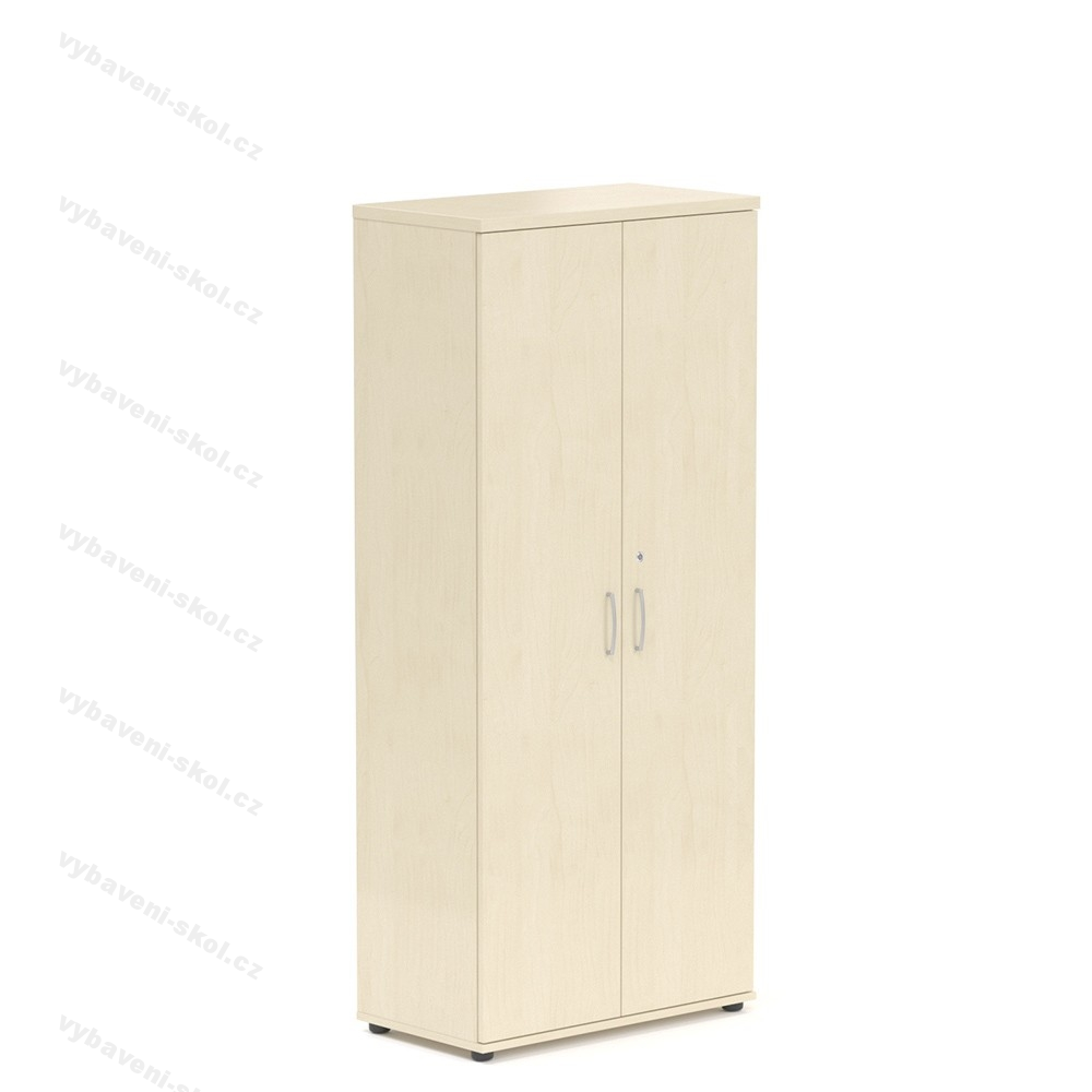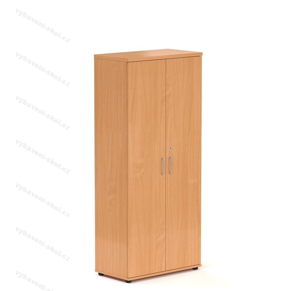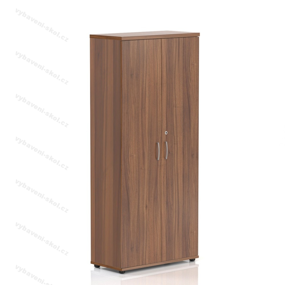 Vysoká kancelářská skříň z laminované dřevotřísky, nastavitelné nohy, vybavena 4 policemi, nosnost 25 kg, 3 typy dezénů. Vysoká skříň Visio disponuje čtyřmi policemi, které při rovnoměrném zatížení unesou až 25 kg. Vrchní deska skříně má sílu 28 mm a je stejně jako ostatní desky vyrobena z laminované dřevotřísky. Skříň dodáváme s uzamykatelnými křídlovými dveřmi po celé výšce, které disponují kovovými úchytkami. Skříň je vybavena nastavitelnými nožkami, díky kterým můžete změnit její výšku až o 10 mm a přizpůsobit si ji podle potřeby. Nastavitelné nožky vám také pomohou vypořádat se s nerovnostmi podlahy.