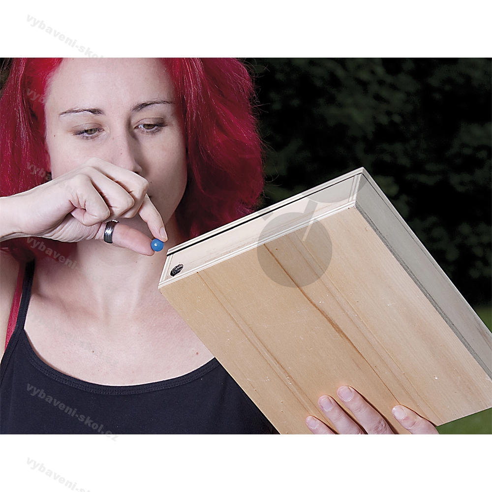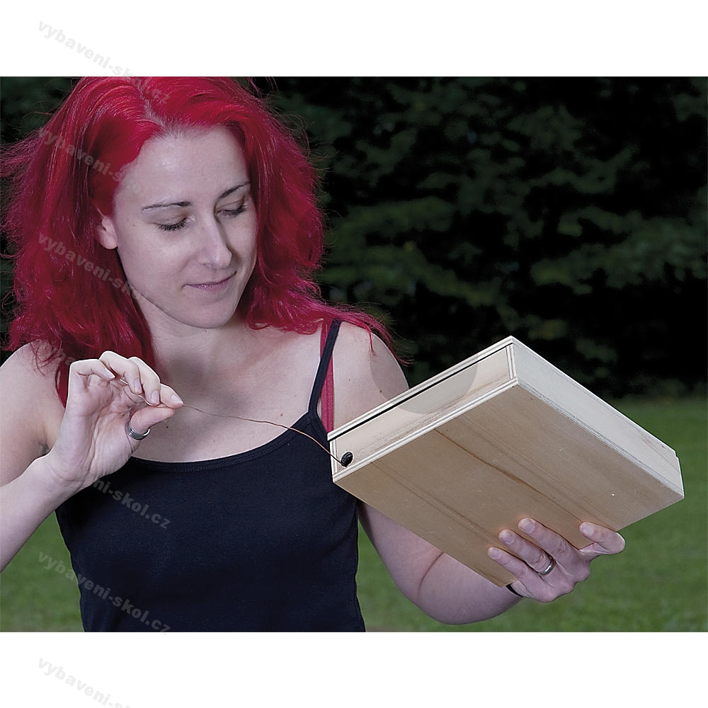 Zobrazená černá skříňka umožňuje studentům a žákům vytvářet určitý model a při něm získávat přírodovědné dovednosti. V tomto procesu se postupně analyzuje neznámá vnitřní struktura skříňky pomocí nejrůznějších pomocných prostředků. Pro pokusné metody je k dispozici měděný drát, skleněná kulička, ocelová koule a silný neodymový magnet. Po provedení jednotlivých pokusů se vytvoří hypotéza k této vnitřní struktuře, která je zkoumána v dalších experimentech. Otevření skříňky není možné, takže na konci experimentu se hovoří o společném poznatku, o něčem, co studenti a žáci ještě neviděli vlastníma očima.