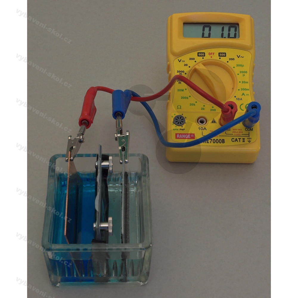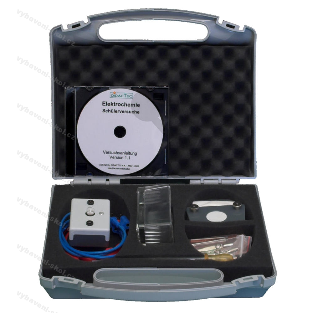 Školní pokusná souprava - umístěná v úložném kufříku - obsahuje základní výbavu pro úvodní pokusy v oboru elektrochemie. Základem je skleněná nádoba s různými elektrodami, ve které lze pomocí různých elektrod provádět pokusy v oblasti vodivosti, pohybu iontů, elektrolýzy, galvanizování atd. Diafragma z jednoho kusu filtračního papíru, který je uchycen v plastovém rámečku, umožňuje společně s těsnícím páskem jednoduché uspořádání galvanického článku složeného ze 2 půlčlánků. Do kufříku je možné umístit i další přístroje, např. ruční multimetr a malý motor. Podrobný návod na provádění pokusů s informacemi učitele a žákovskými pracovními listy je připojen na CD-ROM.
