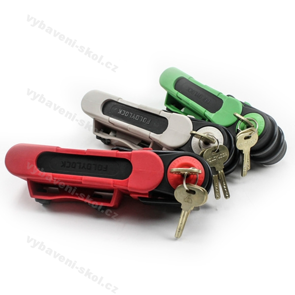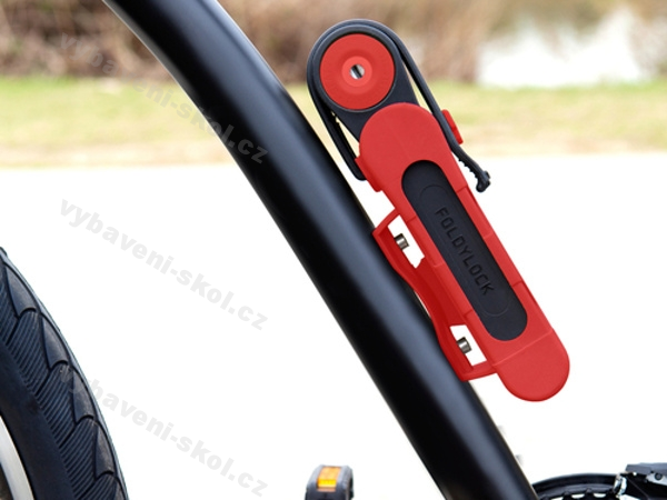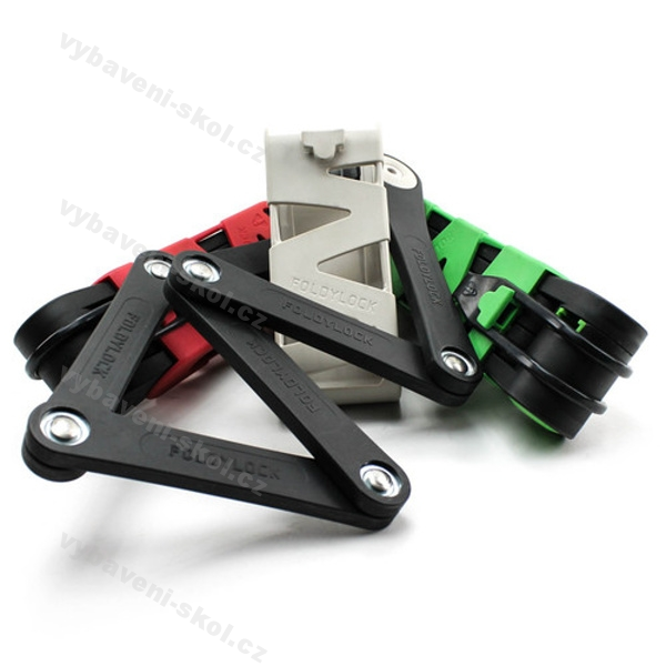 Spousta vývojářů se pokusilo o inovaci legendárního řetězce nebo zámku U, ale žádný z nich se nepřiblížil potřebám lidí tak, jako FOLDYLOCK. Vzhledem připomíná skládací pravítka, která si pamatujete z dětství – rozložení a samotné použití FOLDYLOCKu zvládne opravdu každý. Skládá se ze šesti dílů tvrzené oceli s plastovými kryty pro ochranu rámu jízdního kola. Ve složeném stavu je snadno přenosný a lehce připevnitelný na kolo. Na výběr ze tří barev (červená, zelená, šedá). Do poznámky uveďte zvolenou barvu.