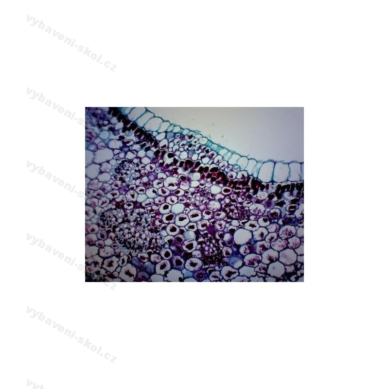 10 preparátů KONUS. Např. dřevo zničené houbou, struma způsobená nedostatkem jodu, příčný řez poškozených listů, poškozených jehlic, kůže ryby poškozené chemikáliemi. V krabičce, náhradní krycí a podložní skla.