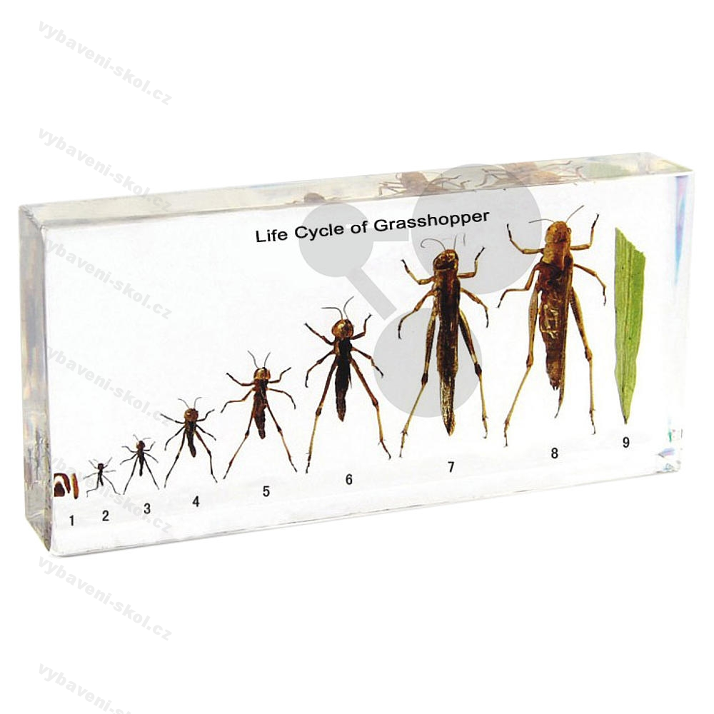 Životní cyklus kobylky luční, preparát zalitý v pryskyřici