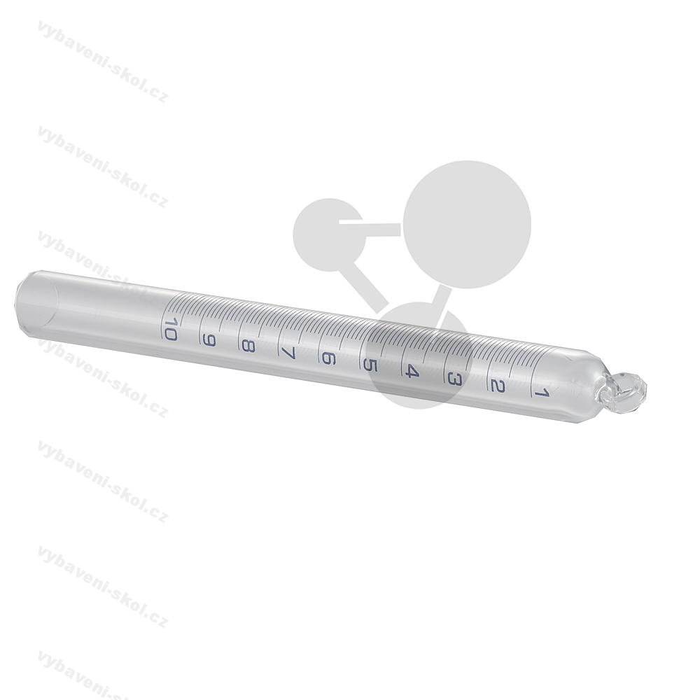 Zkumavka na plyn se škálou, AR sklo, s okem pro zavěšení.
