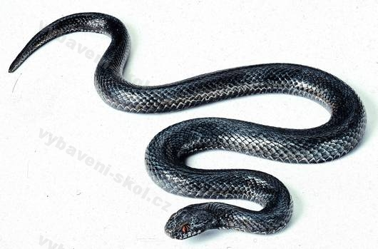 Vysoce realistický model melanického mláděte zmije obecné ve skutečné velikosti. Precizní rukodělná výroba.
